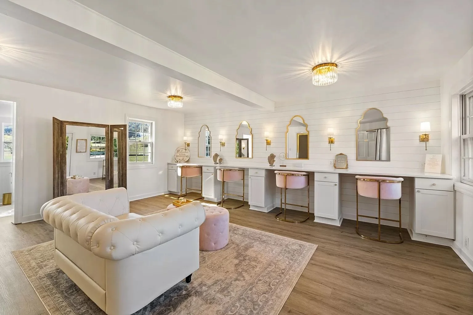 The perfect space for any bride to relax the morning of her big day! Come on in and start your morning with a mimosa toast while all the girls hang out!