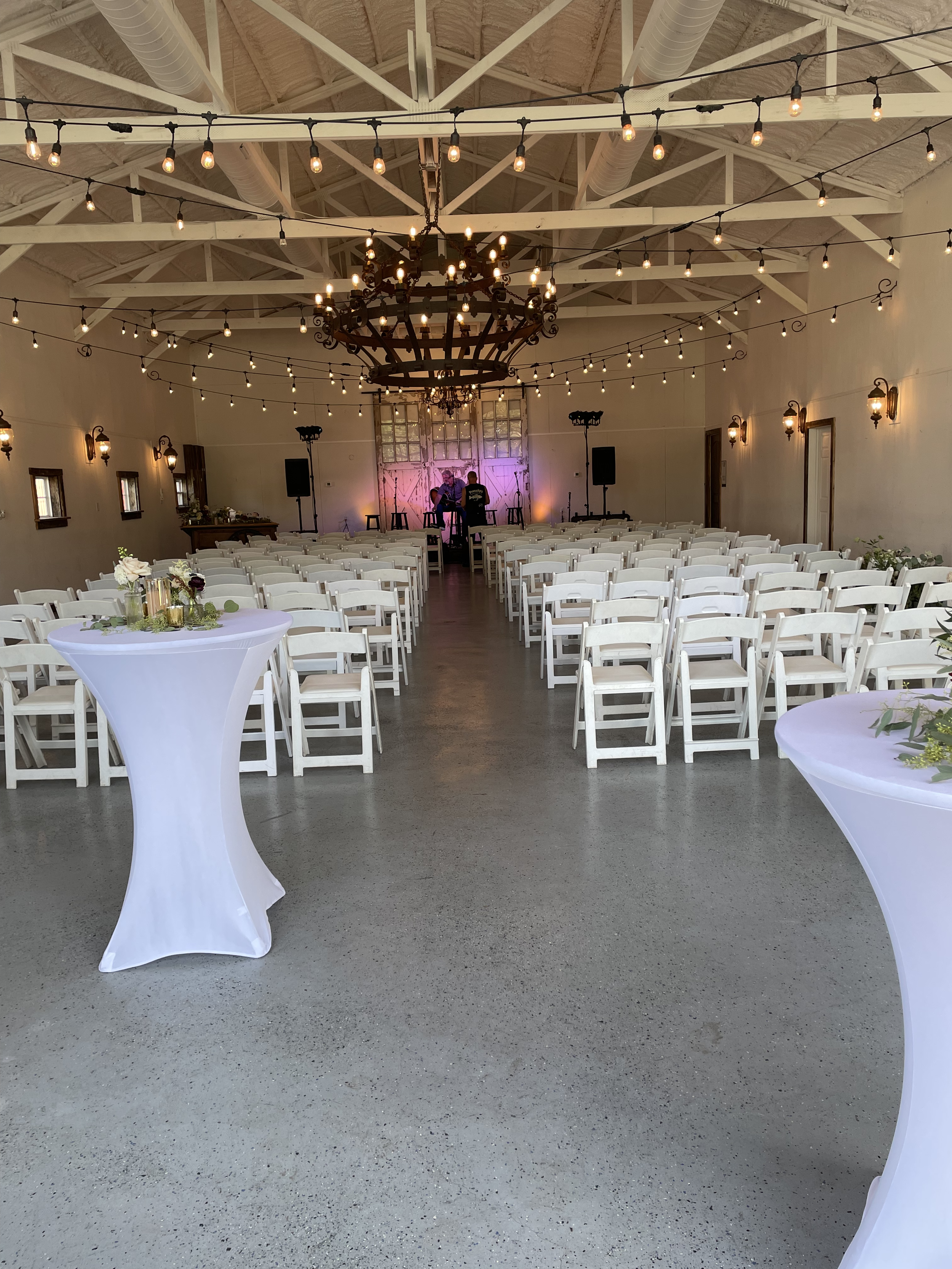 This space can accommodate up to 180 guests for a seated dinner. Our antique wrought iron chandelier, white washed walls and white ceiling create the perfect “blank canvas,” against which you can create the wedding you’ve always dreamed of! Caterers love the spacious commercial kitchen, guests love the outdoor patio and couples love the climate controlled space, guaranteeing year-round comfort for family and friends!